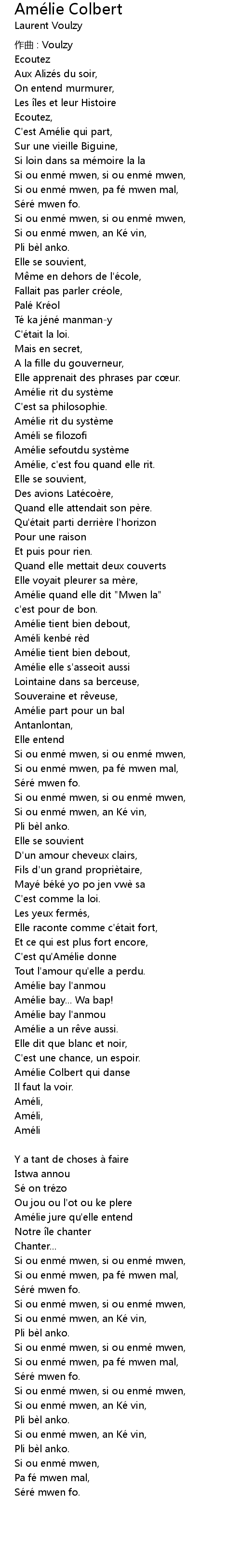 | Ame lie quand elle dit " Mwen la" | |