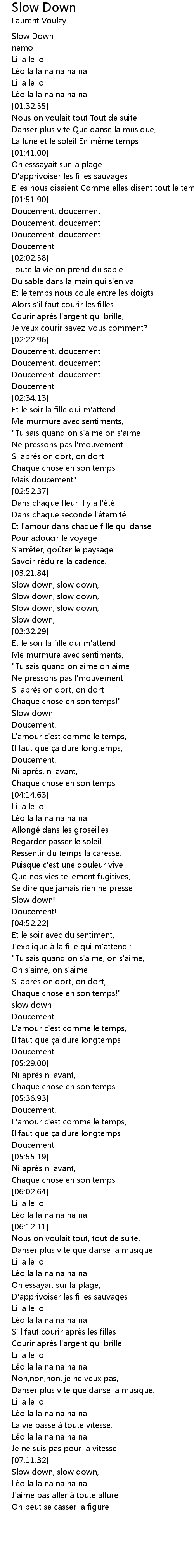 | [07:19.68] | J' aime pas aller a toute allure |