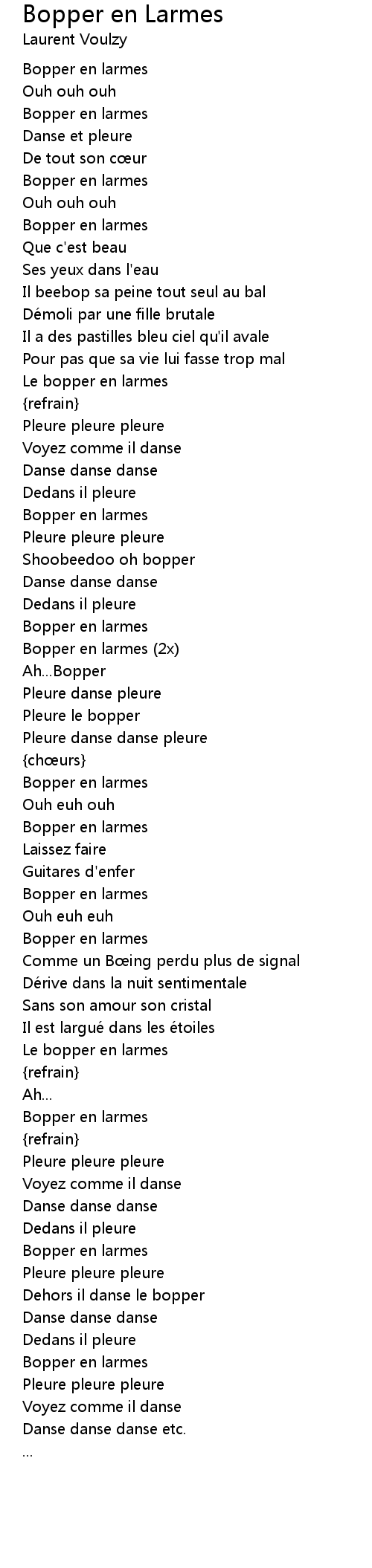 | Song | Bopper en Larmes |