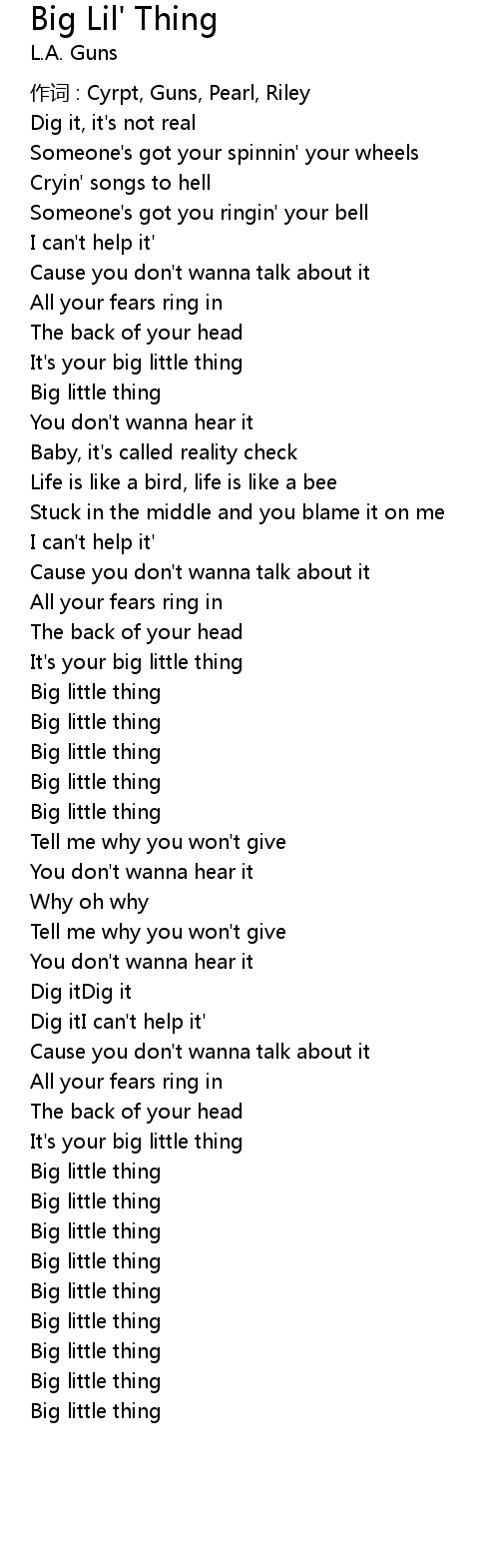 | Song | Big Lil' Thing |