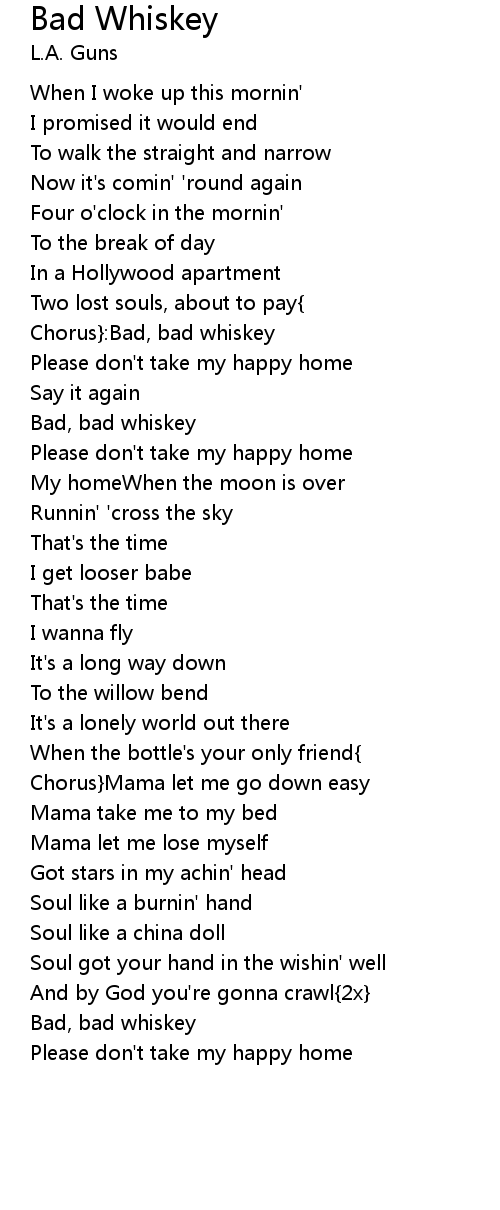 Chorus}:Bad, bad whiskey |
