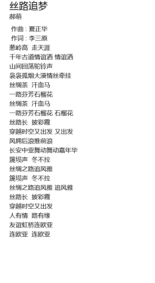 | [02:57.64] | 丝绸之路追风雅 追风雅 |