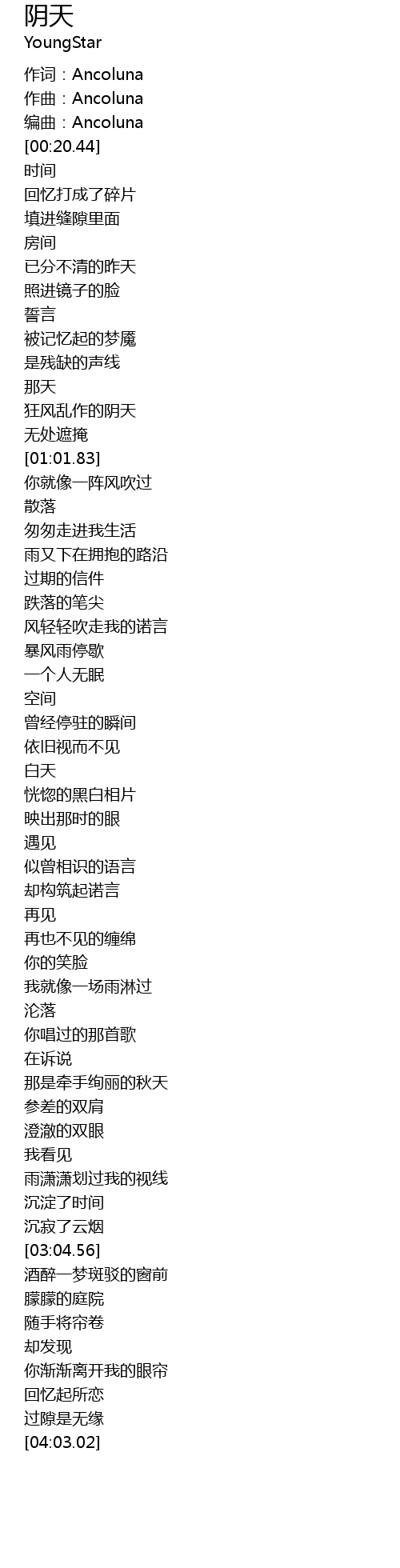 | [00:42.36] | yǐ fēn bù qīng de zuó tiān |