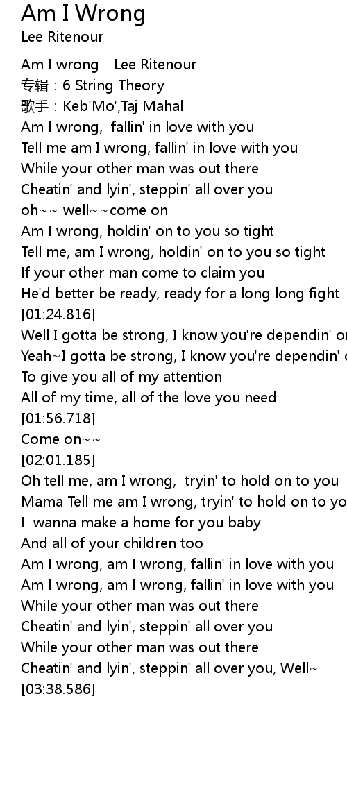 | [00:00.040] | Am I wrong Lee Ritenour |