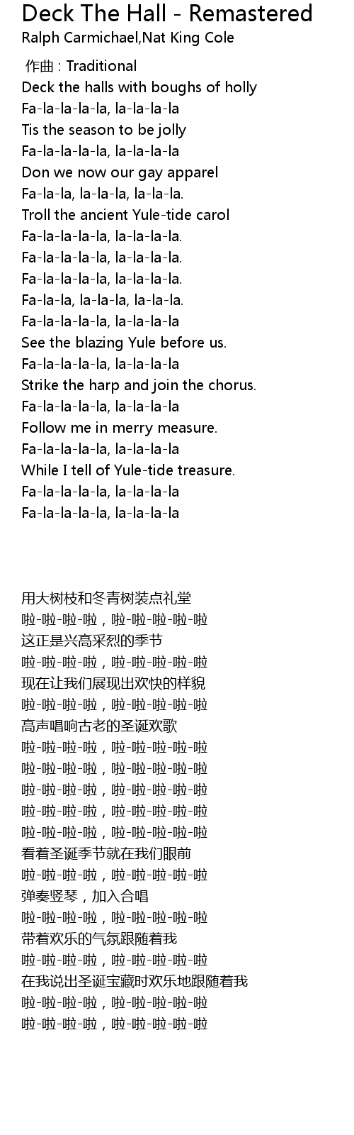 | [00:17.923] | Troll the ancient Yuletide carol |