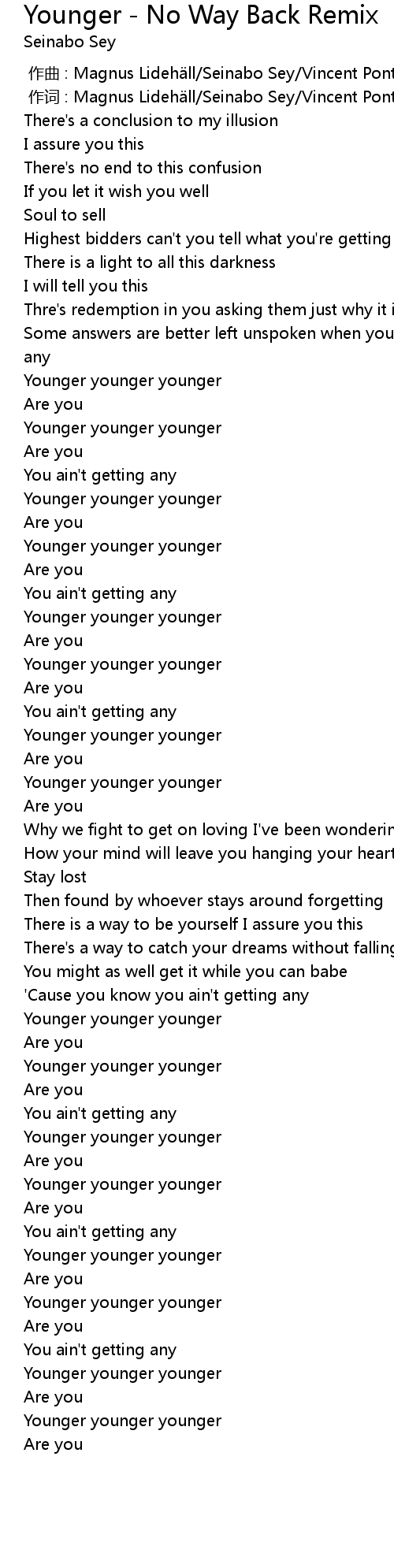 | [01:55.84] | Younger younger younger |