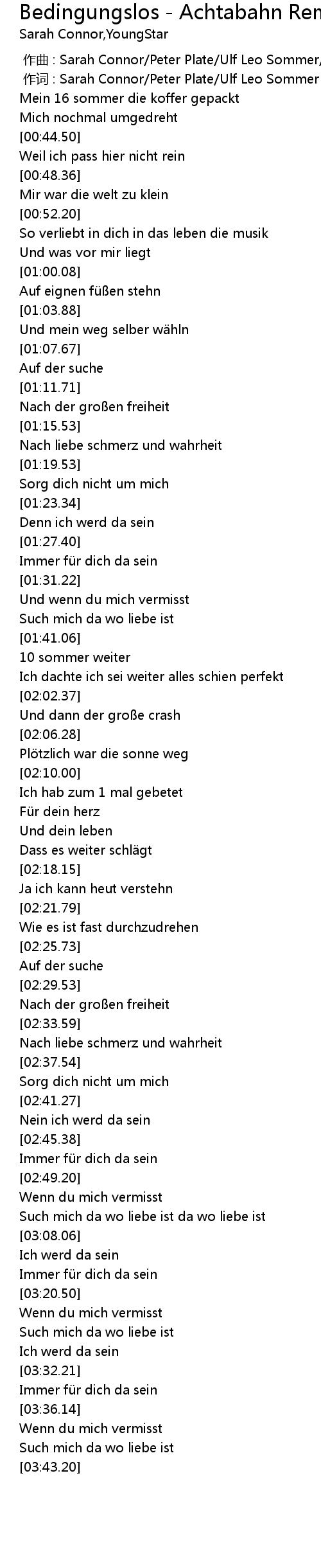 | [03:14.46] | Ich werd da sein |