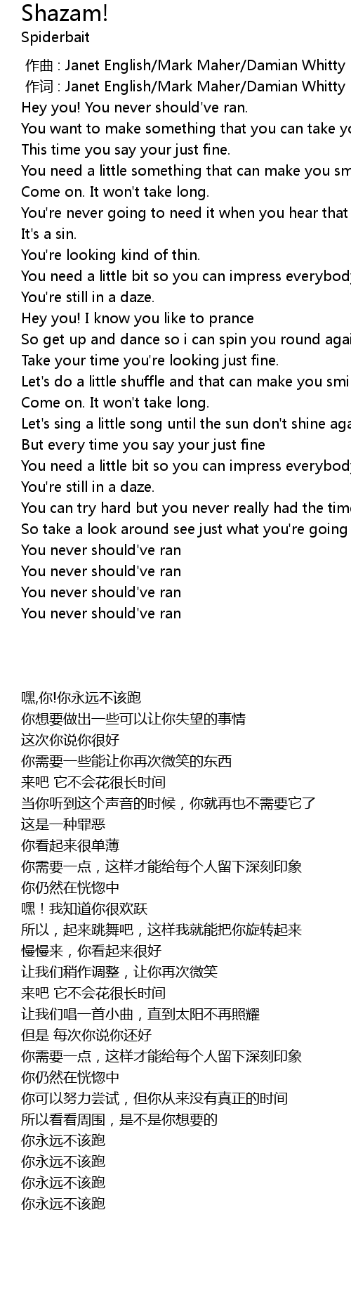 | [00:01.00] | 作词 : Janet English/Mark Maher/Damian Whitty |
