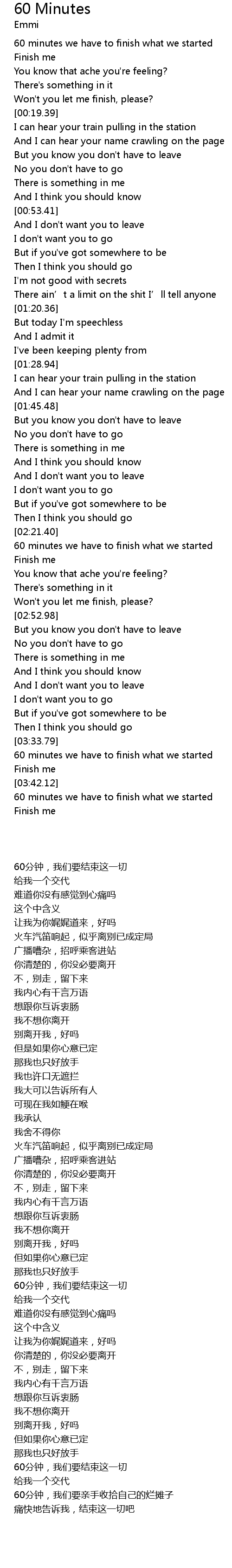 | [00:04.75] | 60 minutes we have to finish what we started |