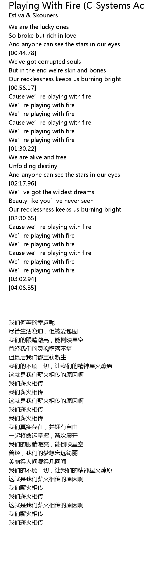| [02:25.59] | Our recklessness keeps us burning bright |