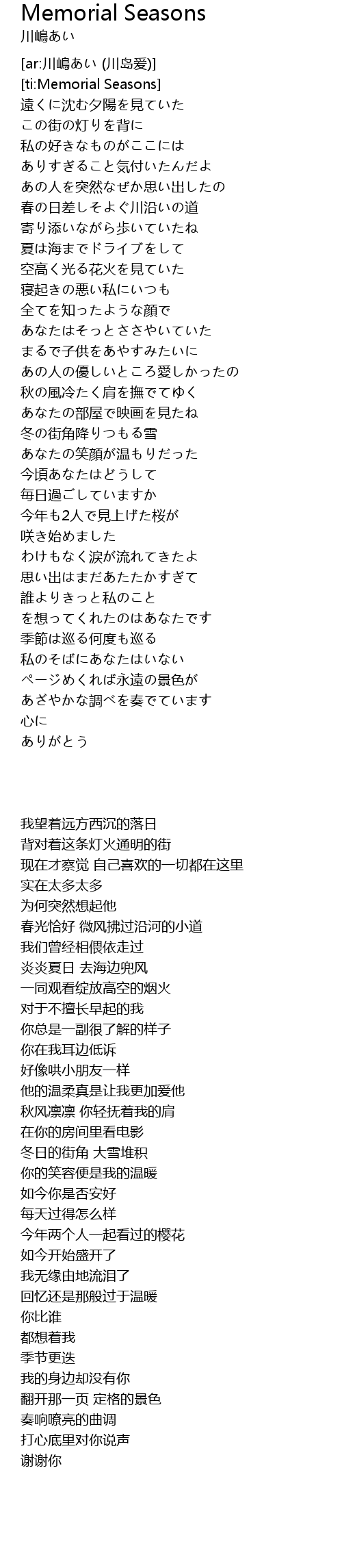 | [00:42.74] | あの人を突然なぜか思い出したの |