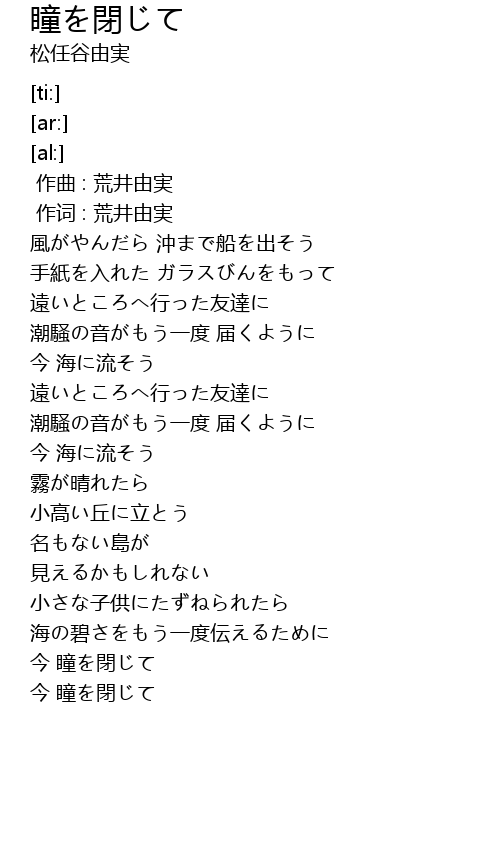 | [00:28.20] | 手紙を入れた ガラスびんをもって |