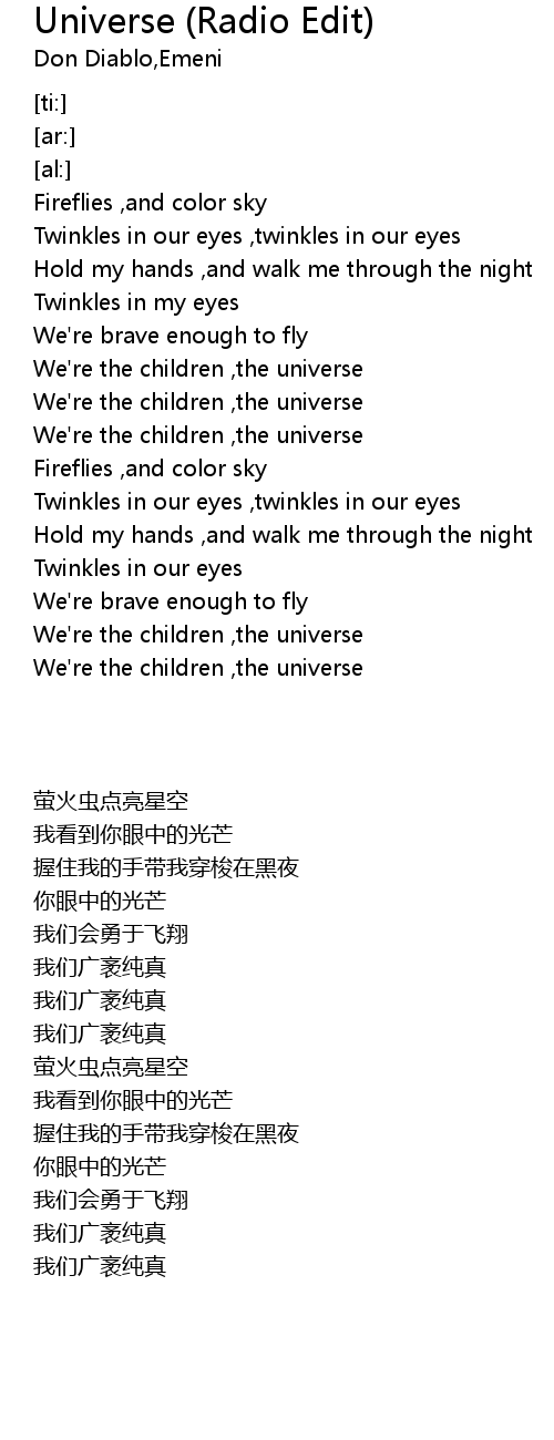 | [01:39.45] | Twinkles in our eyes ,twinkles in our eyes |