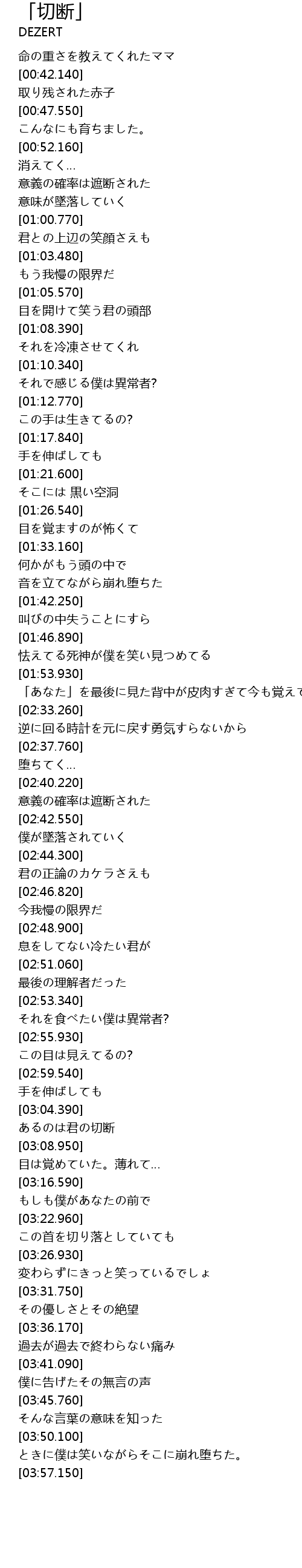 | [03:04.600] | あるのは君の切断 |