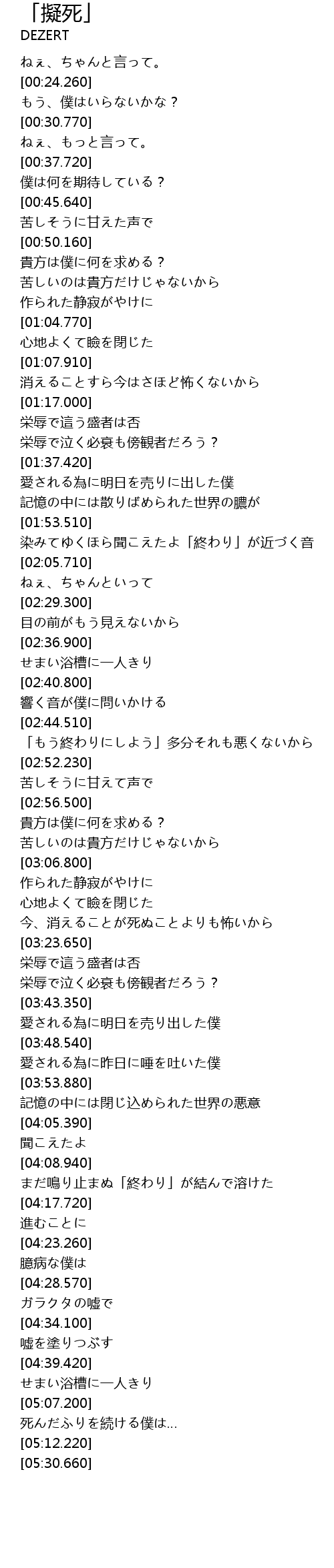 | [05:07.640] | 死んだふりを続ける僕は… |