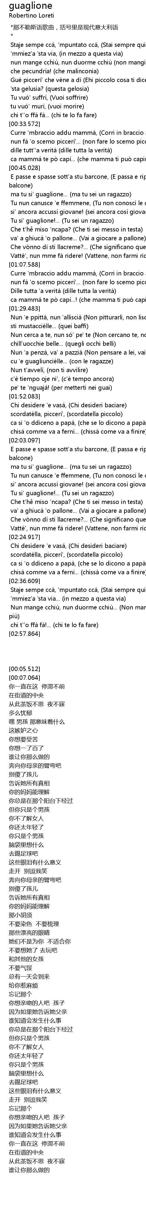| [00:05.512] | *那不勒斯语歌曲,括号里是现代意大利语 |