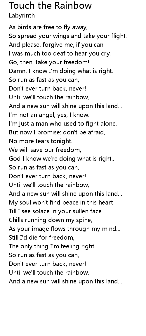Until we'll touch the rainbow, |