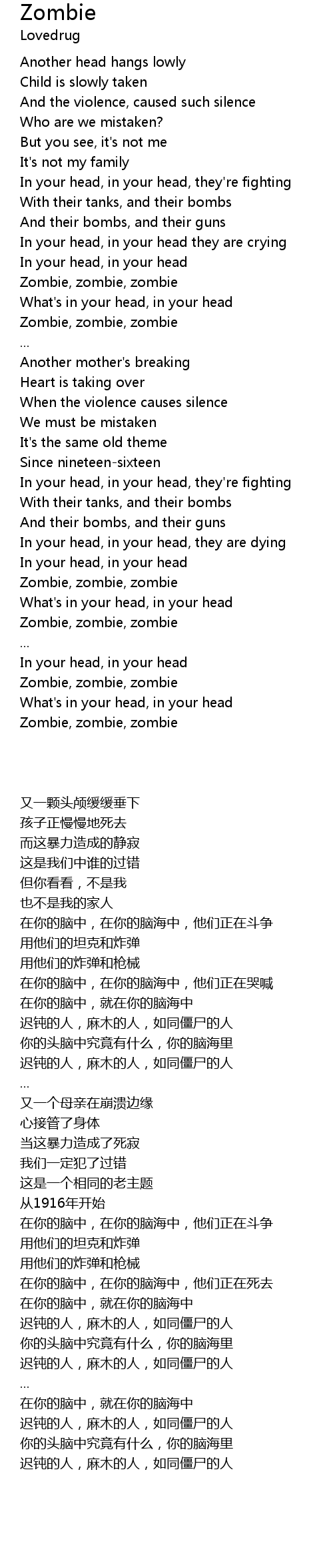 In your head, in your head, they are dying |