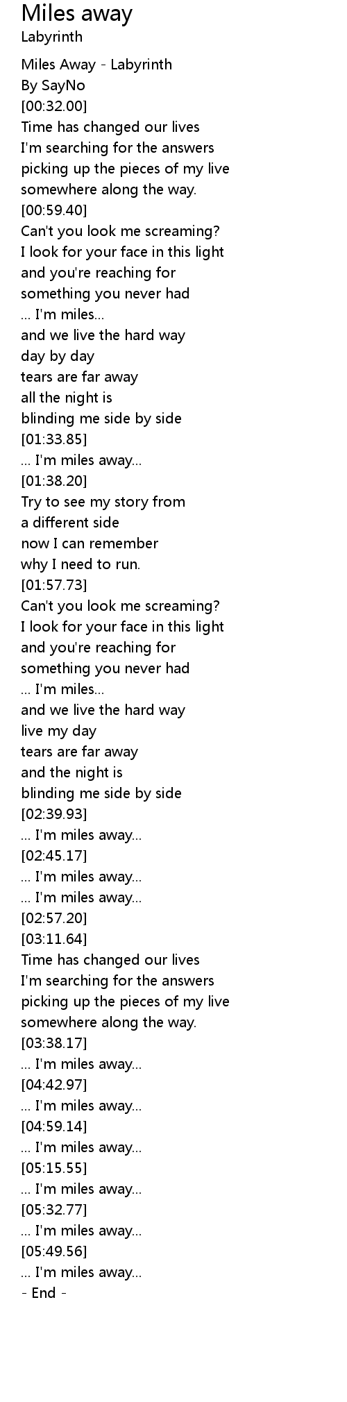 | [00:00.00] | Miles Away - Labyrinth |