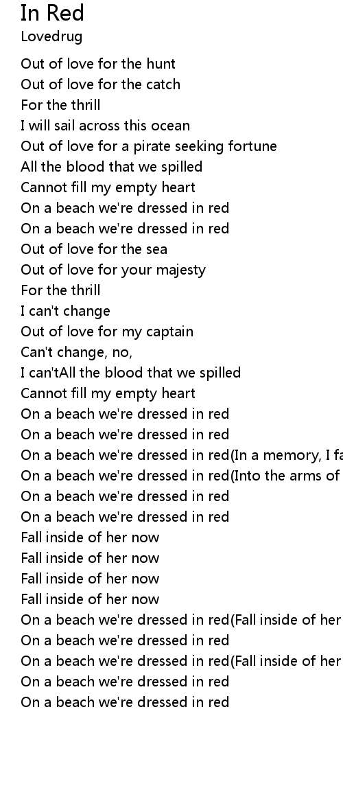 On a beach we're dressed in red(Fall inside of her now) |