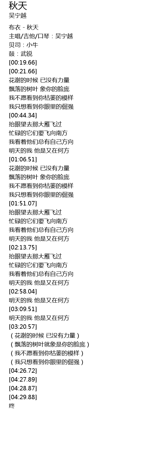 | [00:11.66] | 主唱/吉他/口琴:吴宁越 |