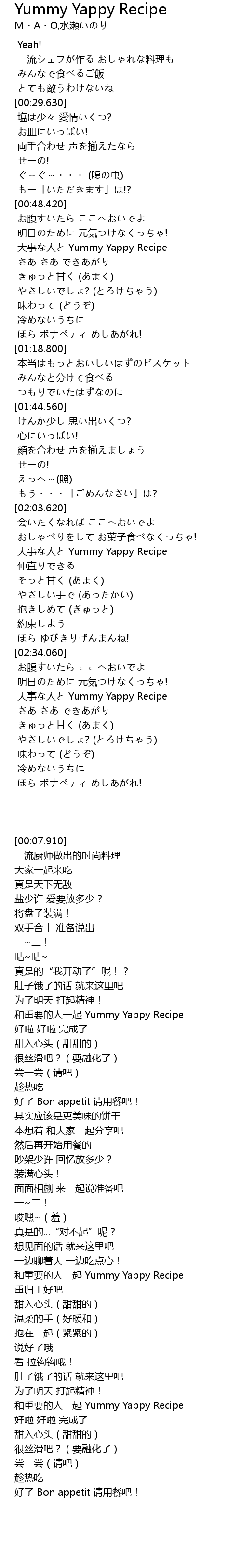 | [03:00.200] | da shi ren Yummy Yappy Recipe |