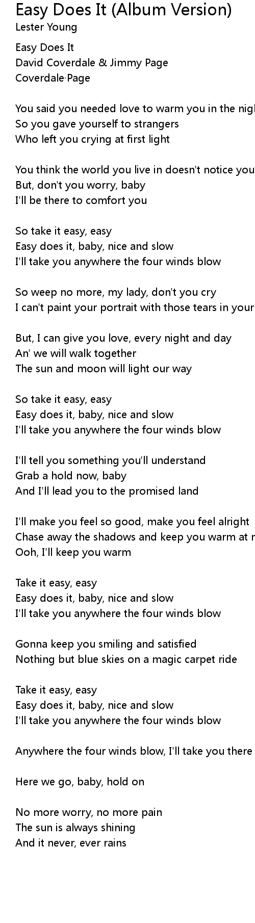 | So take it easy, easy | |
