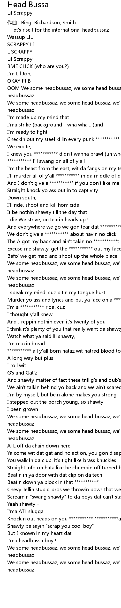 | OOM We some headbussaz, we some head bussaz, we' ll knock a hata out, we some headbussaz | |
