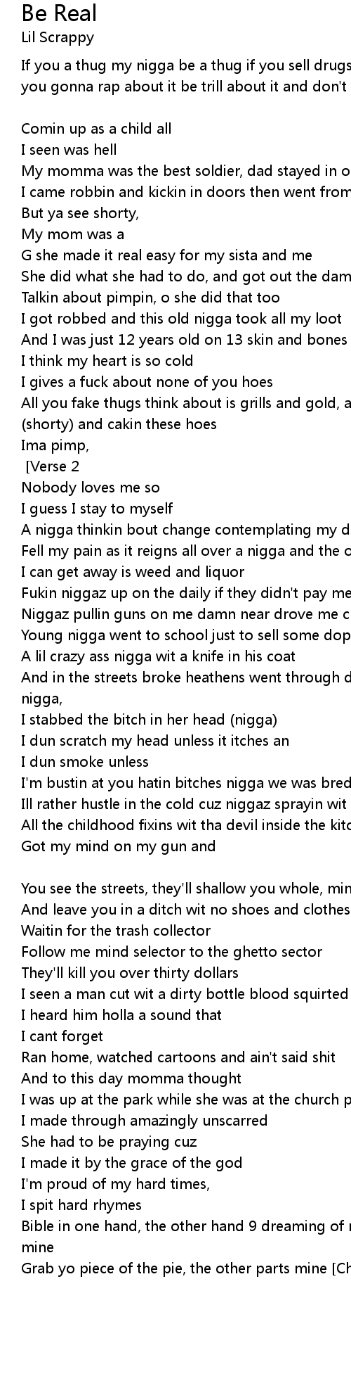 If you a thug my nigga be a thug if you sell drugs my nigga then sell drugs if you gonna rap about it be trill about it and don't say shit if you can't |