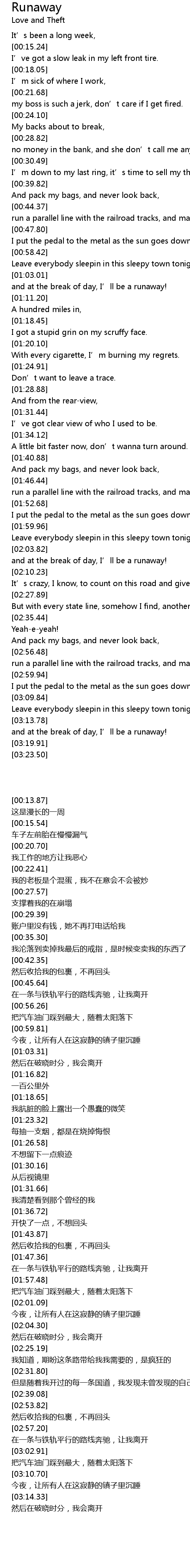 | [01:03.31] | and at the break of day, I' ll be a runaway! |