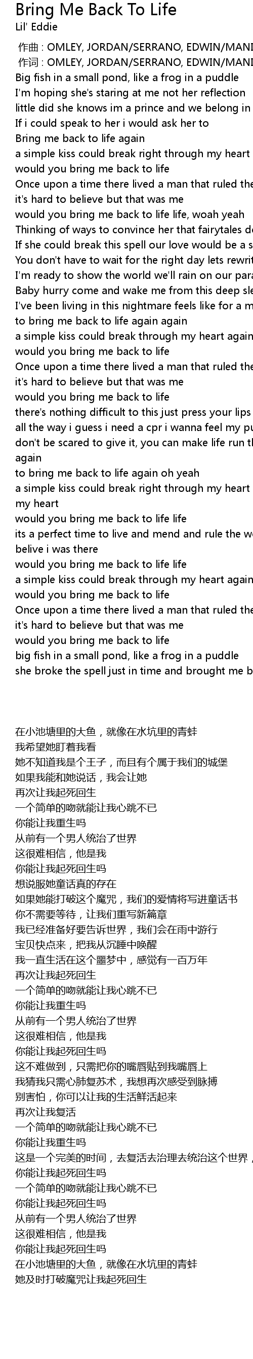 | [00:58.86] | would you bring me back to life life, woah yeah |