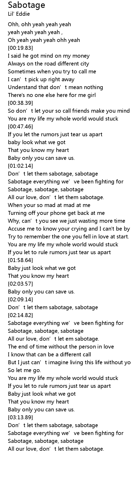 | [02:21.57] | Sabotage, sabotage, sabotage |