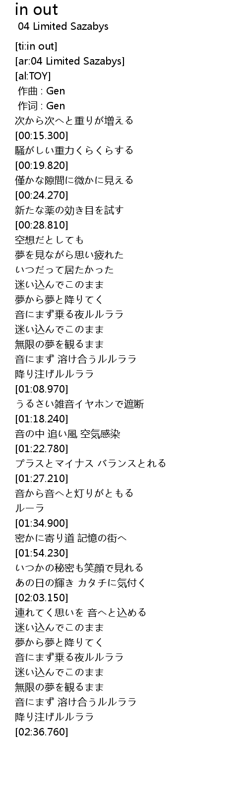 | [01:18.900] | 音の中 追い風 空気感染 |