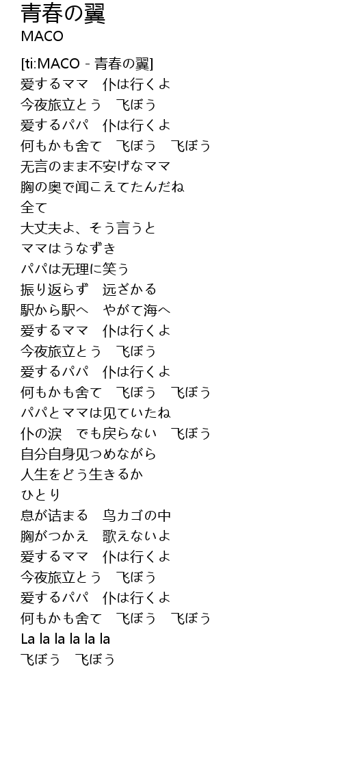[ti:MACO - 青春の翼] |