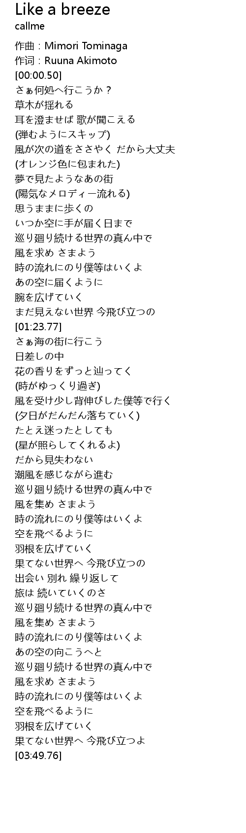 | [00:00.00] | 作曲:Mimori Tominaga |