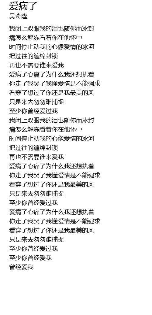 | [02:18.80] | 爱病了心痛了为什么我还想执着 |