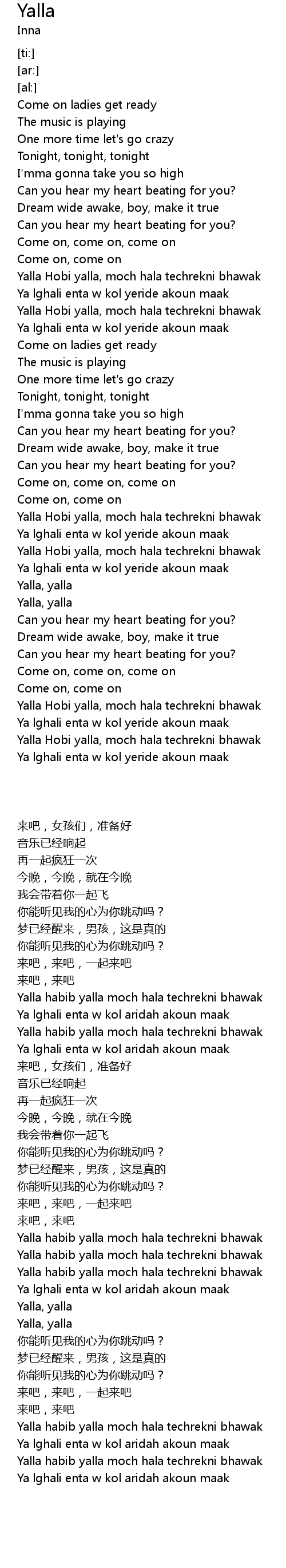 | [02:05.54] | Yalla, yalla |