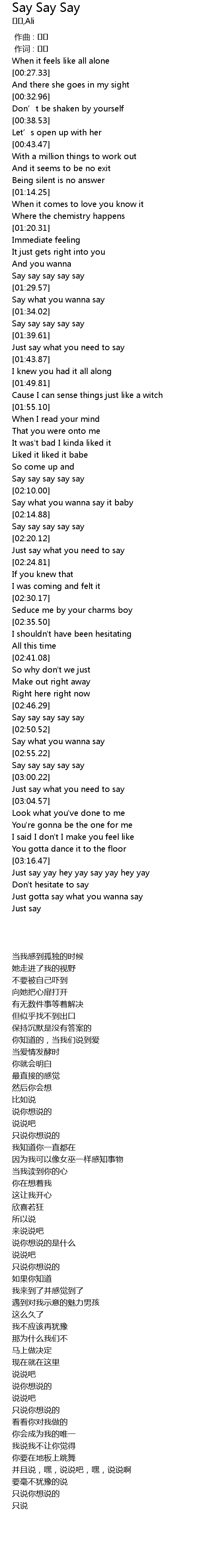 | [03:16.99] | Just say yay hey yay say yay hey yay |