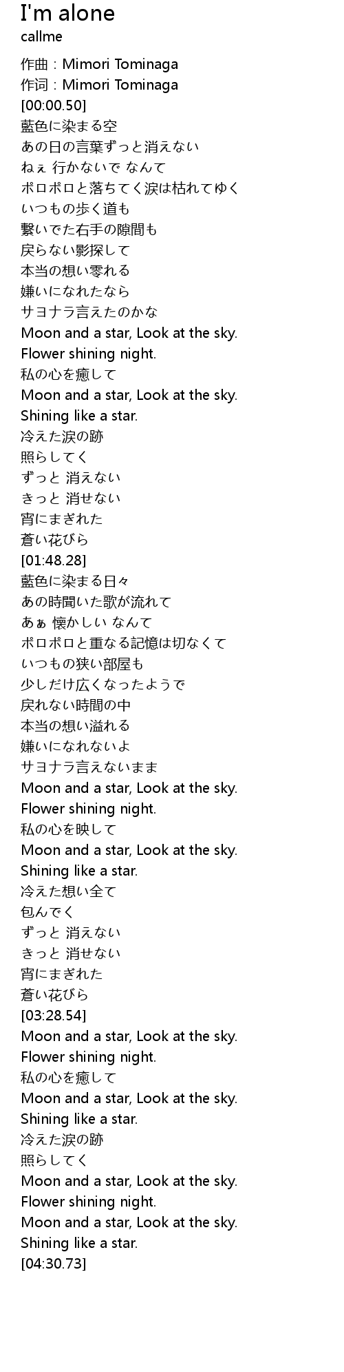 | [00:00.05] | 作词:Mimori Tominaga |