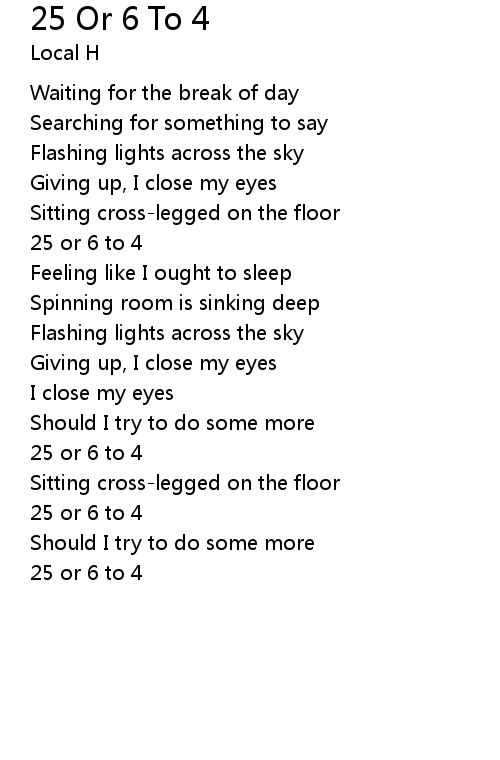 | Song | 25 Or 6 To 4 |