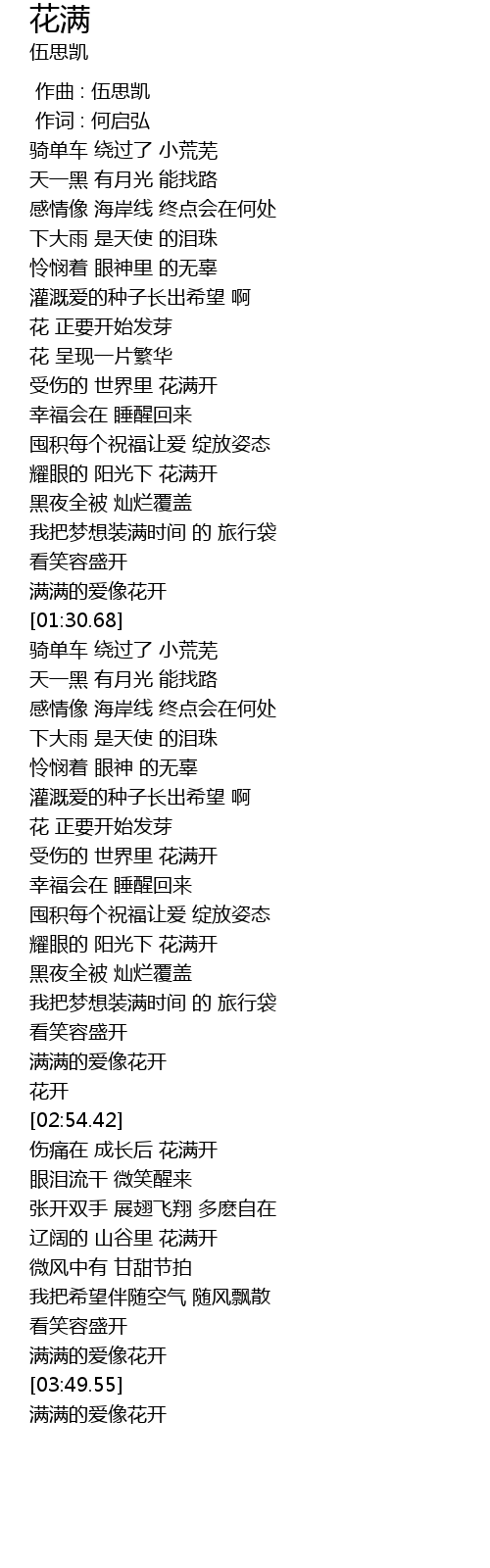| [01:25.35] | mǎn mǎn de ài xiàng huā kāi |