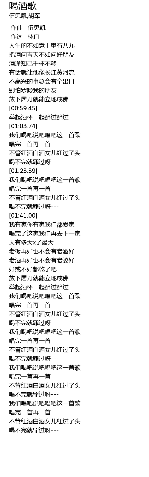 | [02:43.31] | 我们喝吧说吧唱吧这一首歌 |