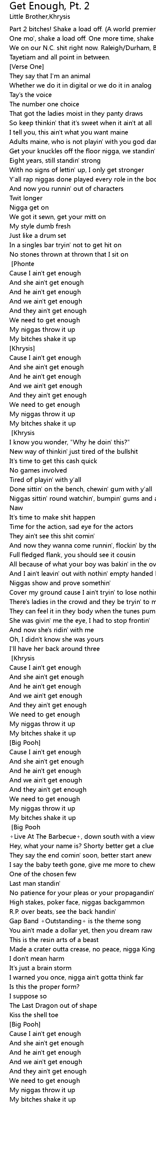 | And we ain't get enough | |