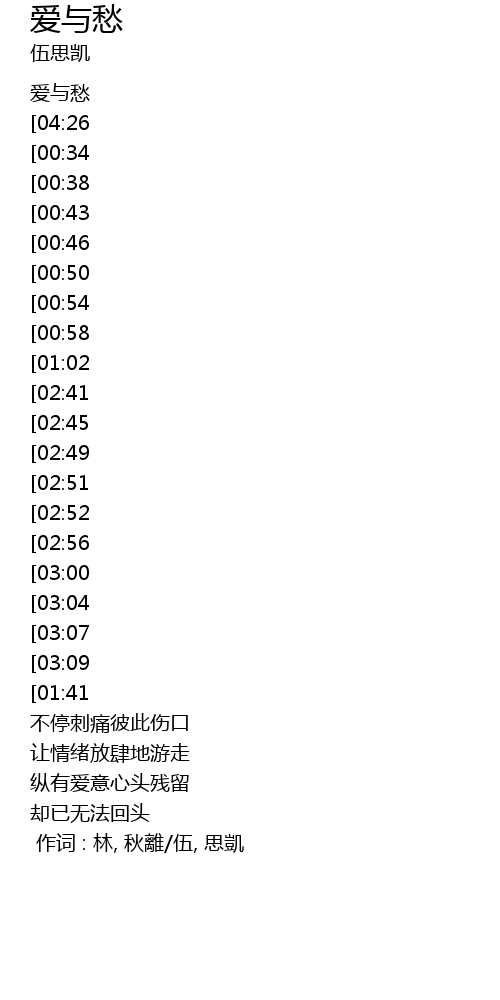 | [00:00.00] | 作词 : 林, 秋離/伍, 思凱 |
