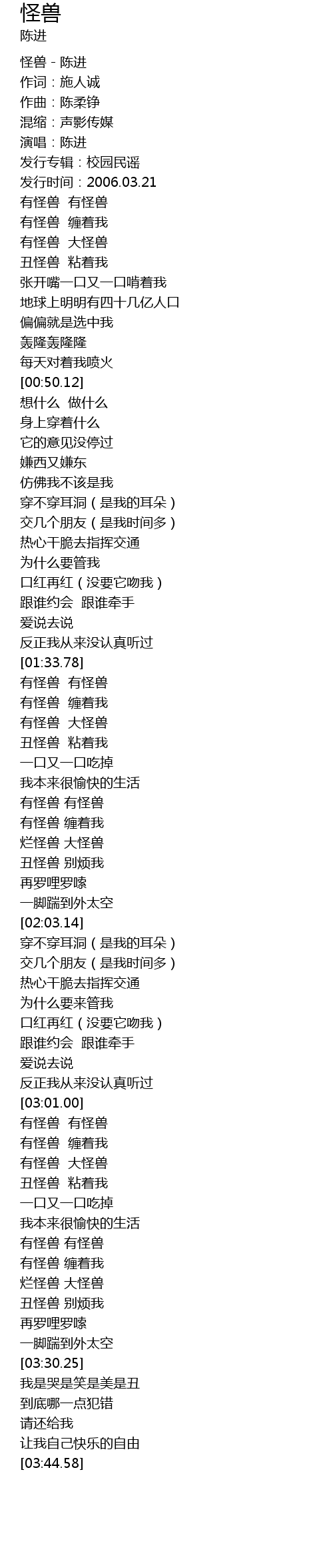 | [00:02.48] | 怪兽-陈进 |