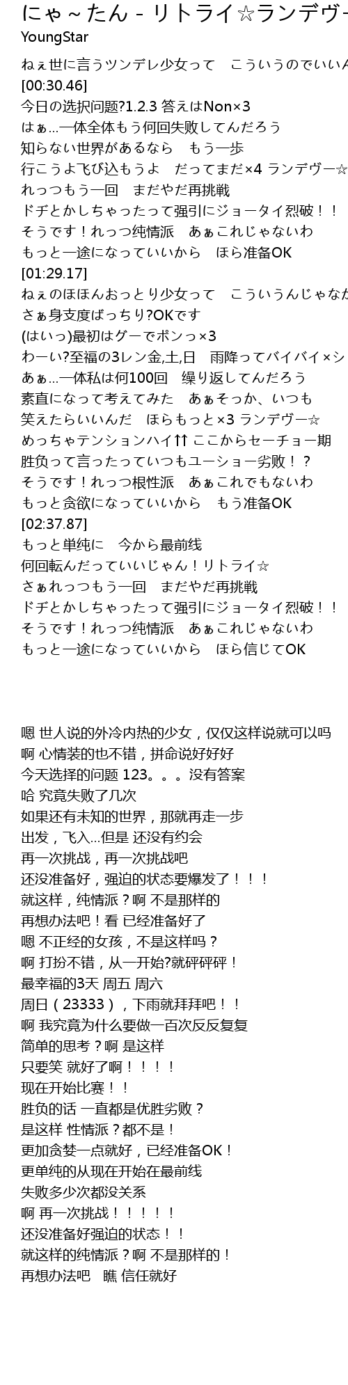 | [03:05.14] | 何回転んだっていいじゃん!リトライ☆ |
