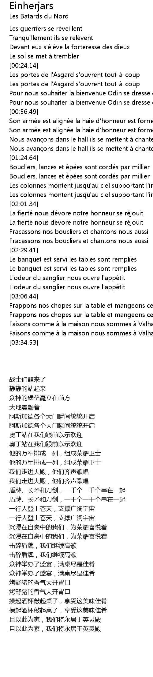 | [03:24.68] | Faisons comme a la maison nous sommes a Valhalla |