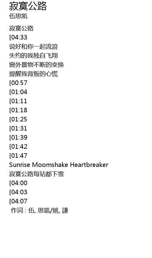 | [04:22][04:07] | 寂寞公路哪里是尽头 |