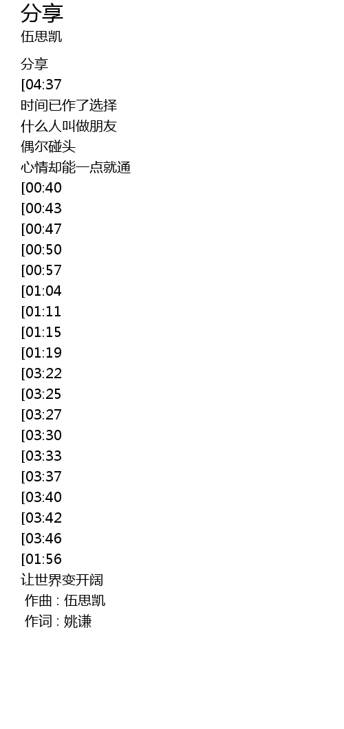 [00:00.00] 作曲 : 伍思凯