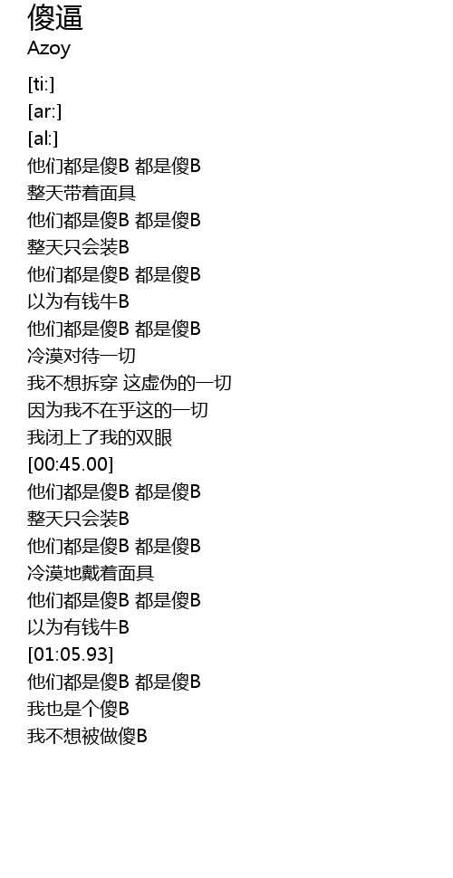 | [00:59.13] | 他们都是傻B 都是傻B |
